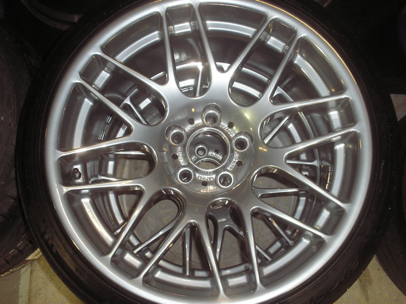 Our wheel refurbishment starts from £45.00 + VAT for bare 19″ wheels and £50.00 + VAT for 18″ wheels with tyres. We can remove and re-balance your tyres and replace old ones too. If you wish to leave your car with us, we can loan our courtesy car for the day if you are 21 and over and you can collect your car with your newly refurbished wheels by 4pm the same day!